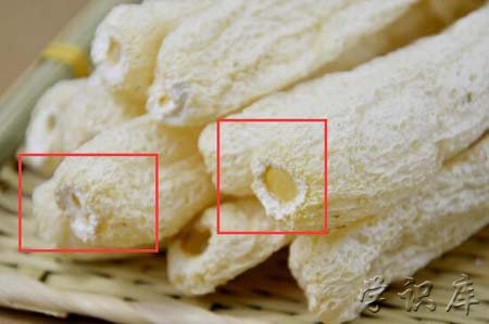 除了菌盖之外,还要注意观察竹荪根部的白色小圈,这小白圈也没有毒性,只不过会有生涩味,也会让人没有食用的欲望。在烹饪前,最好将小白圈给去掉,也就是上面的干竹荪哪里不能吃图解,以免影响整体的风味。
