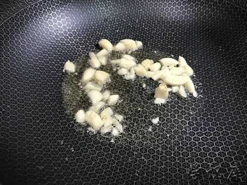 2、炒锅上火烧热,放食用油,把大蒜放进去炒香。