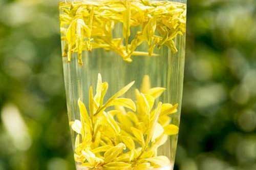 黄金芽不仅汤色明黄,味道鲜美,而且氨基酸含量高达9%,是茶叶中最高的。黄金芽的营养价值很高,在冲泡的时候最好不要用刚煮沸的开水,应以80℃~85℃的水温为宜,冲泡后不需要洗茶,否则容易将里面的茶味冲淡,里面的芳香物质也会慢慢流失,一般需要泡2~3次左右即可。