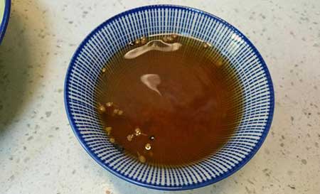 1、锅里加入200克左右清水,水开后加入2克花椒粒,大火煮2分钟后倒入碗中,晾凉备用。花椒水是做羊肉馅必不可少的调料,不仅可以去除羊肉的腥膻味,还能使饺子吃起来鲜嫩多汁。