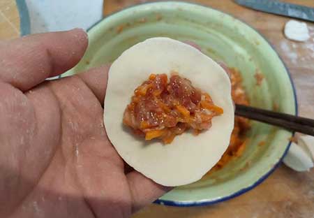 7、包饺子最好自己和面做饺子皮,外面买的饺子皮比较干硬,不容易捏合,易破皮。包饺子用的面团要和得稍软一些,两次醒面,两次揉面,把面团充分揉光滑后搓成长条,下剂子,然后擀成饺子皮,包入饺子馅。