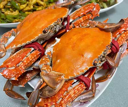 4、蒸好的梭子蟹要趁热食用,这样才能更好地品尝到蟹肉的鲜美。