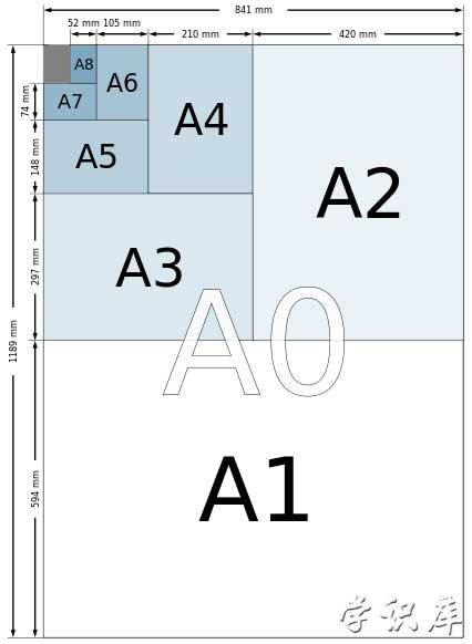 A4纸尺寸是由ISO216是国际标准化组织即ISO所定义的A系列纸张尺寸国际标准。A系纸张尺寸的长宽比是1:radic;2(一比根号2),也就是白银比例,然后按四舍五入,取其整数,单位为毫米值的尺寸。
