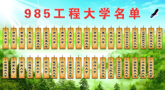 985大学一般指985工程,俗称985院校,指中华人民共和国教育部为了建设若干所世界一流大学和一批世界著名高水平研究型大学而实施的教育计划,是中国共产党和中华人民共和国国务院在世纪之交为建设具有世界先进水平的一流大学而做出的重大决策。