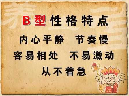 5、B型性格者与之相反,则是安于现状,比较没有主见和上进心,但往往健康情况良好。