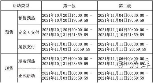 10月20日晚20点启动第一波预售,11月4日晚20点开启第二波预售,详细时间如下参考下面的附件图片