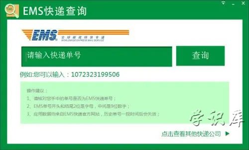 2、在搜索栏中输入ems,下面显示了相关搜索ems速递物流,我们点击它,点击EMS中国邮政速递物流;