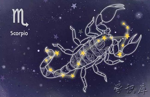 天蝎座是黄道十二星座中星体最集中的星座,非常明亮夺目。它可谓是十二星座中最名实相符的星座。整个星群的形态与蝎子非常神似,其中一颗最明亮的星体,恰恰位于蝎子的胸部,故被称为“天蝎之心”。