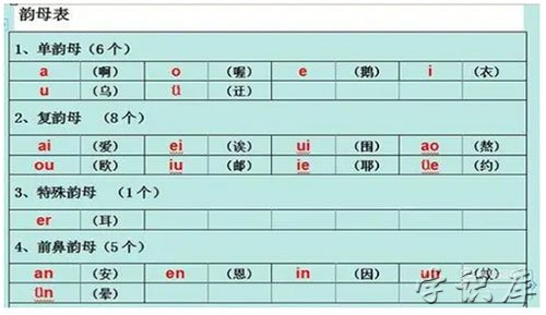 1、单韵母:a、o、e、i、u、ü;单韵母是由一个元音构成的韵母,又叫单元音韵母。