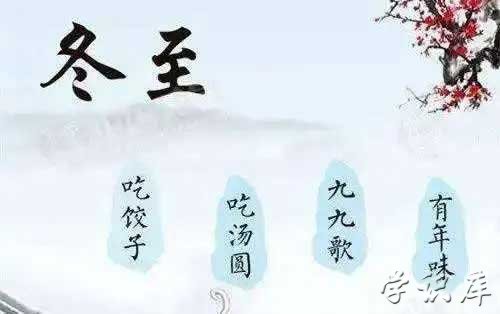冬至表示寒冷的冬天来临。冬至时,太阳黄经为270°。冬至这一天,阳光几乎直射南回归线,我们北半球白昼最短,黑夜最长,开始进入数九寒天。天文学上规定这一天是北半球冬季的开始。而冬至以后,阳光直射位置逐渐向北移动,北半球的白天就逐渐长了,谚云:吃了冬至面,一天长一线。