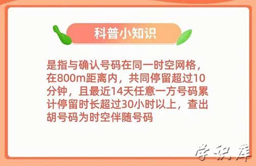 时空伴随者,新冠疫情催生的一个新名词。指本人的电话号码与确诊号码在同一时空网格(范围是800M*800M)共同停留超过10分钟,且最近14天任一方号码累计停留时长超过30小时以上,查出的号码为时空伴随号码。
