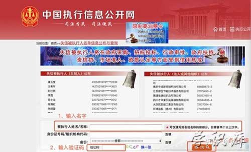 失信人员黑名单查询方式:
