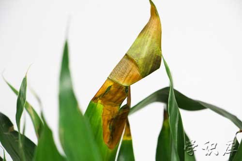 7、空气干燥室内空气过分干燥时,花卉往往会出现叶尖干枯或叶缘焦枯等现象。应注意采取喷水、套塑料薄膜罩等法增加空气湿度,