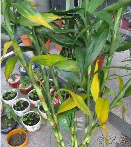 7、更换盆土:富贵竹叶子发黄,可能是盆土过于潮湿,导致根部腐烂的缘故,此时要将富贵竹从原来的盆土中挖出,将根部腐烂的部位剪除后,重新栽种在干燥疏松的盆土中,而且栽种后要及时补水,让富贵竹适应移栽环境。