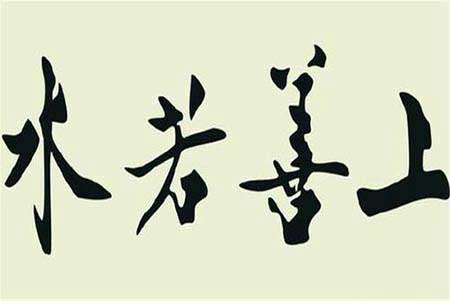 上善若水,是最高境界的人的德行,就像水的品性一样,泽被万物而不争。上善:最完美;水:避高趋下是一种谦逊,奔流到海是一种追求,刚柔相济是一种能力,海纳百川是一种大度,滴水穿石是一种毅力,洗涤污淖是一种奉献。