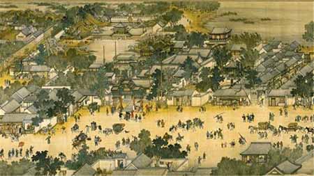 《清明上河图》是中国古代一幅弥足珍贵的社会民俗生活长卷,是北宋画家张择端仅见的存世精品,属国宝级文物,现藏于北京故宫博物院。画中反映了开封作为中国北宋时期都城的社会生活、市井风情和城建格局,布局结构严谨,主要分三个部分:第一个部分展现汴京早晨市郊的景象,晨雾朦胧人们早起劳作;第二个部分展现的是汴京主干河上下情景,船只往来,两岸繁华;第三个部分则是展现繁华街市的热闹景象。通过三个部分的情景展示,活灵活现的把城市面貌展现了出来,是非常具有历史价值的。
