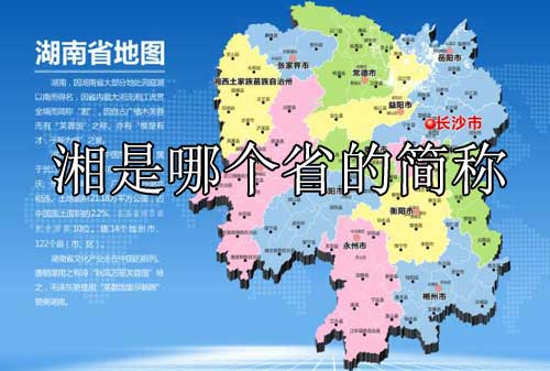 湘是湖南省的简称,湖南是我国23个省之一,东临江西,西接重庆、贵州,南毗广东、广西,北连湖北,总面积21.18万平方千米。湖南省的省会是长沙市,还有其他12个地级市,分别是:株洲市、湘潭市、衡阳市、邵阳市、岳阳市、常德市、张家界市、益阳市、娄底市、郴州市、永州市、怀化市。湖南拥有1个自治州,湘西土家族苗族自治州。