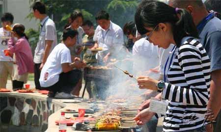 BBQ是一种有趣的烹饪方式,有点像中国新疆的烤羊肉串。BBQ一般是在户外进行。人们外出时一般是将木炭放在烧烤台上,然后用火将木炭点燃,再将金属编成的烧烤架放在木炭上方,然后将生鱼、肉等食品放置在烧烤架上并在食物上涂抹一些酱油和辣椒面等调料。