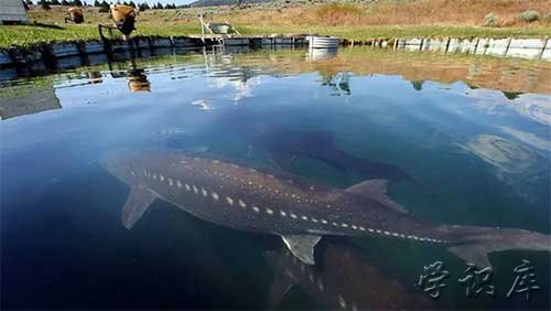 高首鲟是北美体型最大的淡水鱼之一,主要分布于加拿大弗雷泽河和美国加州萨克拉门托河。高首鲟体型呈纺锤状,鱼体全长为头长的4倍,为体高的7.1倍。其头部宽大,眼睛偏小,其性成熟期比较长,雌高首鲟需长至1.5米,雄高首鲟需长至1.2米,雌性的体型也要比雄性的大许多。此外,其尾柄也颇长,歪型尾下对较其他鱼偏长些,并且全身都没有鳞片,背骨板也显得又尖又大。