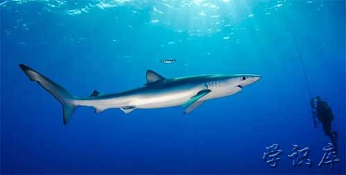 大青鲨,鲨鱼的一种,体细长,2-4米。身体近似纺锤形。头宽扁,头长小于全长的四分之一;吻三角形,长而尖突。眼小,圆形。口呈半月形,上颌牙三角形,边缘具有细锯齿;下颌牙较狭而尖。上下颌各有牙28-30枚。鳃孔有5个。背鳍两个,第一个背鳍不大,上角钝尖形,下角尖突形;第二个背鳍比臀鳍小。尾细长,尾鳍上下方各具有一个凹洼。胸鳍呈镰状。腹鳍小,近似方形。身体背面和上侧面为灰青色,腹面和下侧面为白色。性情凶猛,游泳敏捷。盛产于温带暖海和热带海洋。常见于海面,贪食鱼群、鱿鱼和其他鲨鱼。