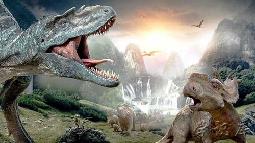 7、食肉牛龙:食肉牛龙生活在白垩纪,也是非常的笨重,和现在的牛差不多,浑身上下都长着大刺,角是很锋利的,可以作为它的武器,它的手臂是很小的,经常会发出一些诡异的笑声,根据研究,它可能比霸王龙还要凶残。