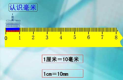 1厘米(cm)=10毫米(mm)