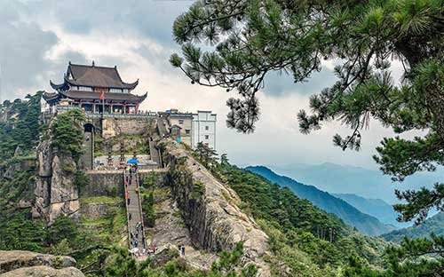 九华山位于安徽省池州市青阳县境内,北俯长江,南望黄山,东临太平湖,西接池州。九华山因为九峰形似莲花而得名,其山峰耸入云霄,又有芙蓉出水之姿,给人以美的享受。九华山与山西五台山、浙江普陀山、四川峨眉山并列为中国佛教四大名山,被誉为国际性佛教道场。