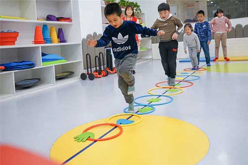 5、身体活动:通过身体上的各种活动,如旋转、摇晃、重力感受等,刺激儿童的平衡和运动感觉系统,提高儿童的身体感知和身体控制能力。