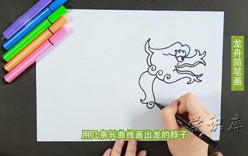 步骤二:然后用几条长曲线画出龙的脖子。