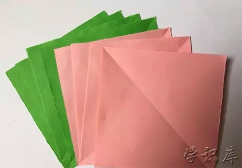 材料准备:8张方形的纸,为了得到预期的效果,可以取4张一个颜色,其余4张另外一个颜色。