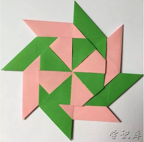 5、最后将四个角尖穿插折成十字架的样式,一个简单的飞镖就这样成功地折好了。