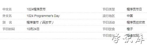 1024程序员节(别称:程序猿节、码农节,英文名:1024 Programmer's Day)是中国广大程序员的共同节日,本着关爱程序员健康的主题,呼吁程序员在节日当天拒绝加班,日期是每年公历10月24日。