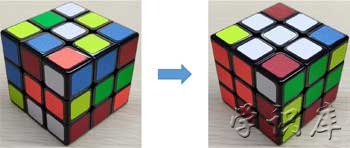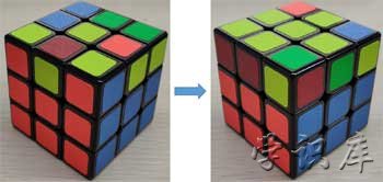 多转几次就会发现,其实这个公式5,是让顶面的四个角块交叉变换,如下图所示。