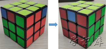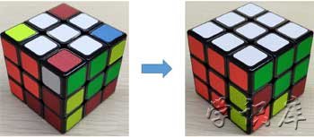 2、小拐弯:就是中心块和左边、上边棱块是对的,其他情况旋转一下可以得到这个相对位置(情况2)