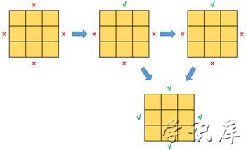4、“十”字:就是中心块以及4个棱块都是对的了,这是这一步的目标(情况4)