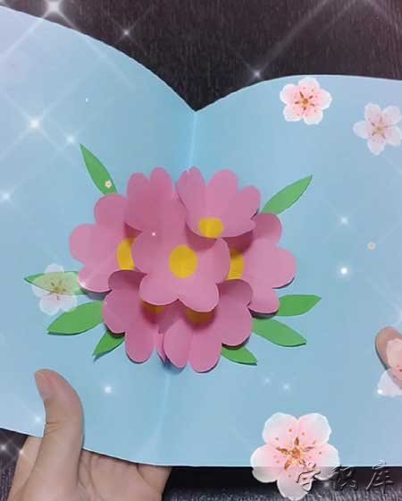 4、然后准备一张硬的卡纸,从中间对折,沿着折痕按照从大到小的顺序将扇形粘上,然后在卡纸上面写上自己想说的话即可。