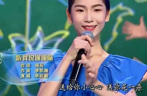 《听我说谢谢你》演唱者是李昕融,李昕融这个小姑娘,也是非常的厉害,不光是有这首《听我说谢谢你》深受大家的欢迎,其中大家一定还很熟悉那首歌,“你笑起来真好看,像春天的花一样”,没错,这首《你笑起来真好看》也是这位小朋友演唱的,除了这两首歌,还有《宝贝宝贝》、《明日歌》这两首歌,也深受歌迷的喜爱。