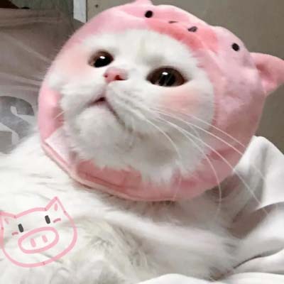 是一张可爱猫咪图,一副期待的眼神,看着主人,戴着毛毛的头套,是一个招财猫的含蓄。