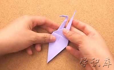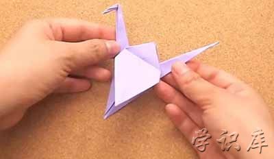 18、产生立体感。 如果你想折出三维的成品,可以捏住身体底部的对角,轻轻拉扯,即可制造出想要的立体感。享受你的纸鹤吧。你可以把它送人、挂起来,或是作为装饰。