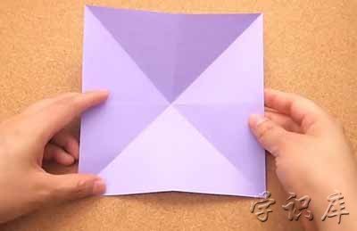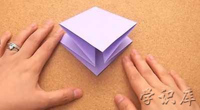8、把最后三步的折痕都展开。做完后,你就又有了一个正方形,中间有一个面朝下的开口。