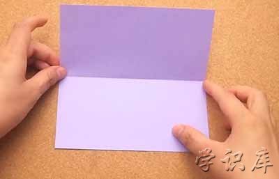 2、把纸对半折成长方形。将纸的上半部分折下来,让纸的顶边与底边对其,然后压出折痕。再将纸展开。