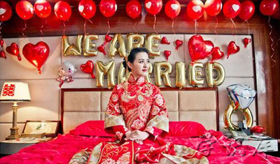 一般在新人床头装饰摆成爱心,床头是离新郎新娘最近的位置,一抬头便可看见红色爱心,一瞬间心里是喜悦的。